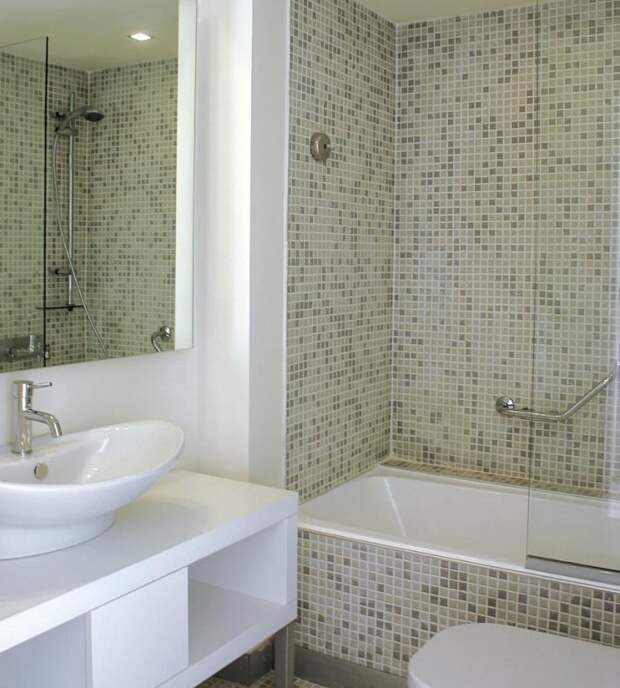 - В небольшой ванной комнате уместно будет выполнить потолок, стены и пол в светлых тонах;