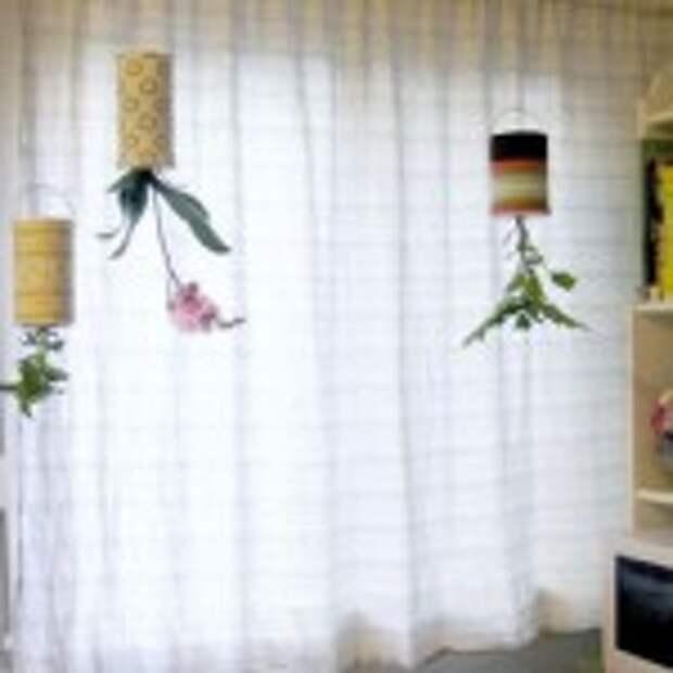 7. Покройте Ваши бутылки-сад разноцветной тканью и приделайте вешалки-ручки.